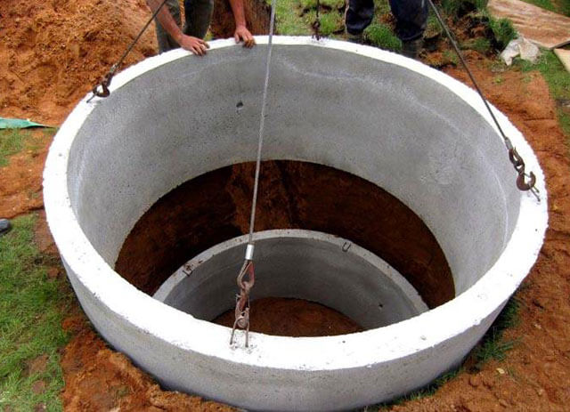 Когда нужно обеспечить на приусадебном участке дренаж — накопительный колодец или иной вид такой конструкции, его можно собрать из железобетонных колец. Их производят из устойчивого к влаге бетона. Размер и диаметр изделий зависит от предназначения сооружаемого объекта. Но при этом глубина их установки должна составлять не меньше двух метров.
