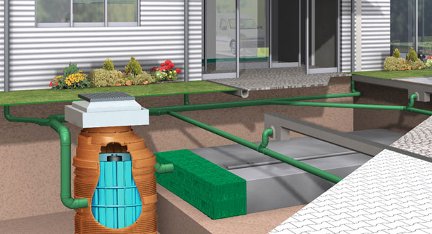 - уровня устройства ливневой канализации, предназначенной для принятия стоков (прочитайте: «Системы водоотведения сточных вод, а также их очистки»).