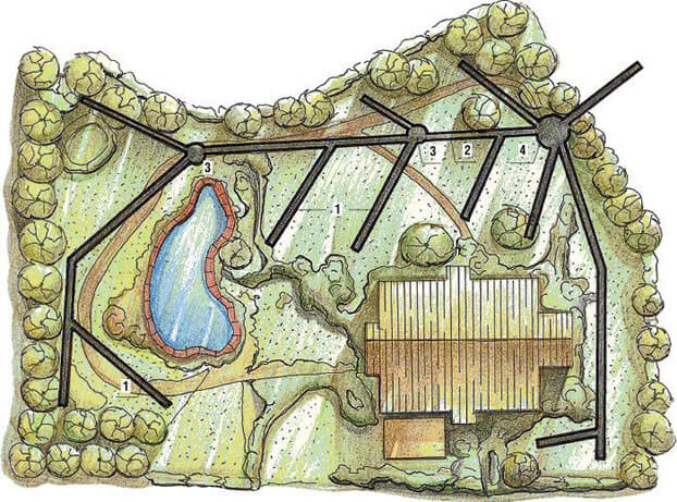 Когда составляется проект дренажа участка, необходимо разработать план расположения водоотводящих систем. Данные конструкции предназначаются для поддержания водного баланса почвы на приусадебной территории.