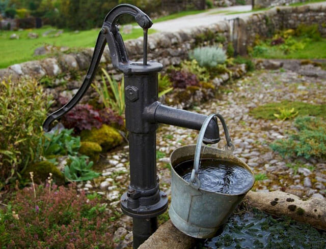 В тех случаях, когда абиссинская скважина в доме является единственным возможным вариантом подачи воды, а водоносный слой расположен на глубине 12-15 м, для поднятия жидкости применяют эрлифт или ручную помпу. Данные приспособления в состоянии поднимать воду на указанную высоту. Еще одним способом решения проблемы излишнего заглубления водоносного слоя является обустройство приямка. Для этого в самом начале забивки выкапывается шурф метровой глубины. Штанги погружают в таком случае, начиная со дна шурфа. По завершению работ проводится монтаж насоса в приямке.