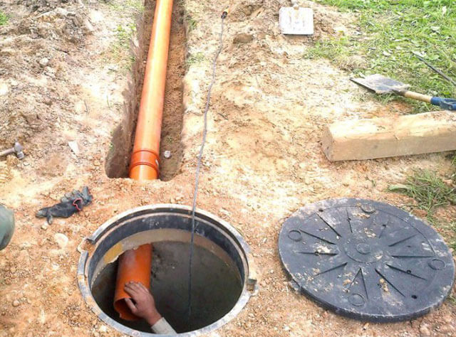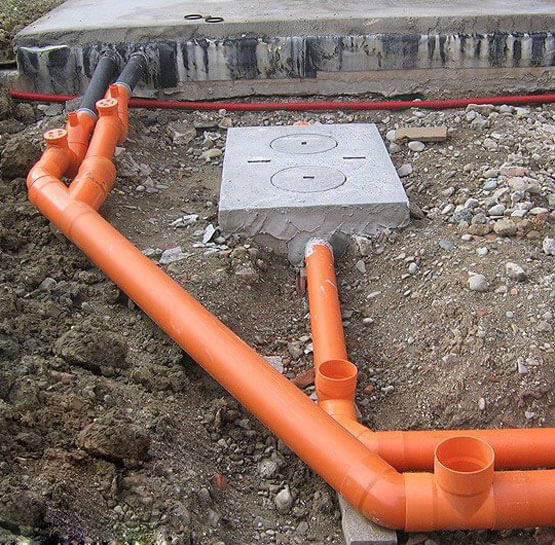 Когда протяженность наружного трубопровода превышает 10 метров, имеет повороты или места соединений, на изгибах и стыках труб обустраивают ревизионные колодцы, предназначенные для контроля над состоянием системы и для устранения засоров.