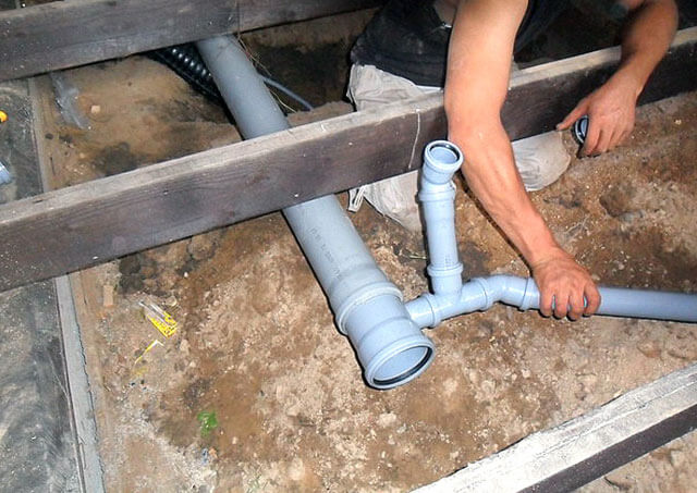 Внутренние инженерные коммуникации лучше прокладывать во время возведения дома, поскольку тогда легче создавать отверстия в стенах и маскировать отдельные участки трубопровода. В процессе монтажа труб непременно следует соблюдать уклон, так как в дачных постройках редко когда устанавливают насосное оборудование и перемещение сточной жидкости осуществляется самотеком. Если выполняется канализация в деревянном доме своими руками, необходимо заранее продумать все возможные проблемы и нюансы.