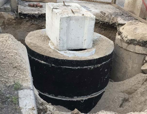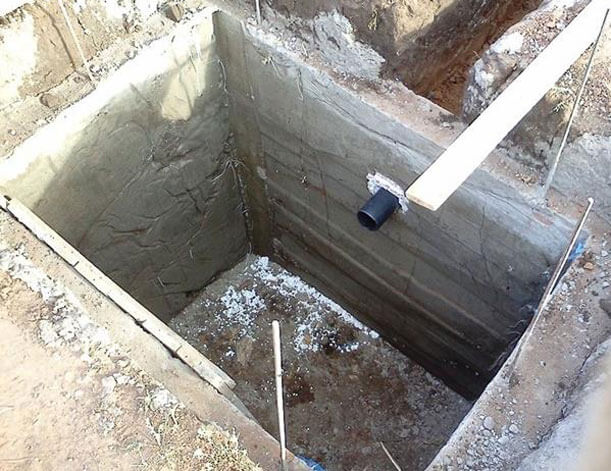 Конструкции, возводимые из колец, кирпича и шлакоблоков, непременно покрывают двумя гидроизоляционными слоями с наружной и внутренней стороны. Эти меры препятствуют попаданию содержимого накопителя в почву, где оно проникает в грунтовые воды.