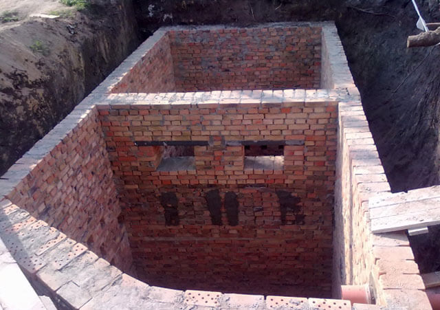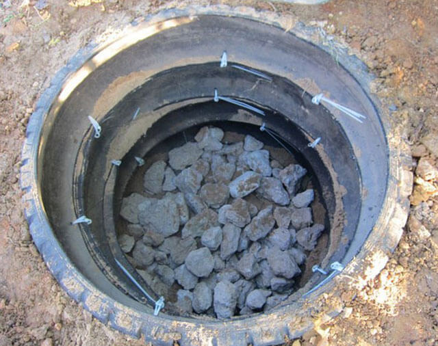 Для строительства применяют доступные по стоимости строительные или подручные материалы: белый или красный кирпич, готовые бетонные заготовки, автопокрышки, пластиковые резервуары, цементный раствор и многое другое.
