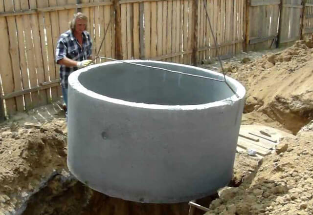 Кольца, произведенные в заводских условиях, устанавливают одно на другое, скрепляя их между собой в местах стыка скобами и герметизируя с помощью специальных прокладок. Изготовители данной продукции с целью упрощения монтажа нижнего элемента накопительного резервуара создали изделие с глухим дном, которое не нуждается в утяжелении.