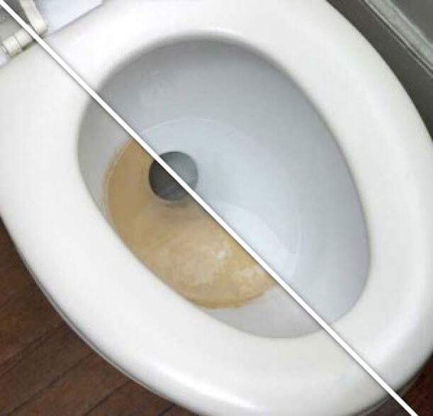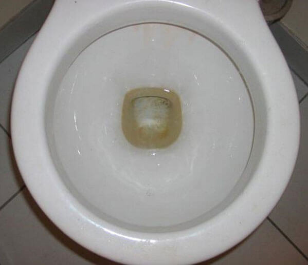 - Известковый налет образуется в результате использования воды с большим количеством минералов. В этом случае пленка образуется и нарастает при каждом смывании. Известковый налет следует очищать с определенной периодичностью, чтобы нарастающие отложения не стали причиной засорения сливных отверстий унитаза. Такая ситуация может полностью вывести сантехнику из строя. Следовательно, нужно знать, как отмыть унитаз от желтого налета.