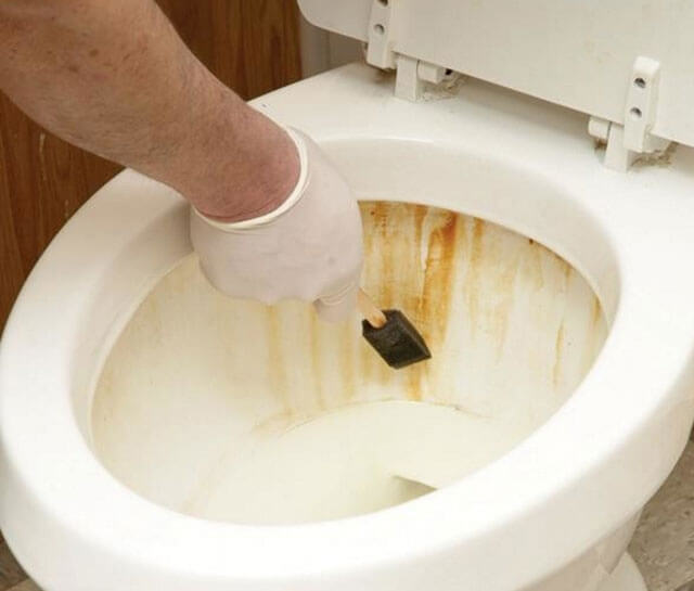 Чтобы удалить известковый налет с унитаза с помощью этого химического состава, выполняется по следующей инструкции: