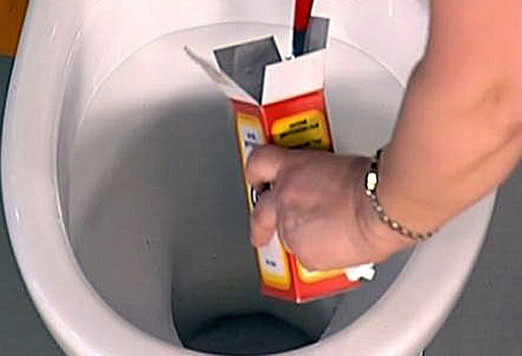 Эти вещества необходимо залить в унитаз, и оставить на время, указанное на упаковке. По истечении определенного периода в унитаз обычно необходимо налить горячую воду, чтобы очистить сантехнику и трубы от действующего вещества и грязи. При применении химических средств необходимо в точности следовать инструкции, указанной на упаковке.