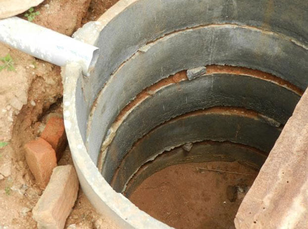 Этап второй – монтаж колец и подсоединение трубопроводов. Устанавливают кольца одно на другое. Иногда в данных изделиях имеются готовые пазы, значительно облегчающие процесс монтажа. Наверху размещают плиты с отверстиями, служащие смотровыми люками.